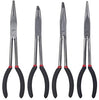 Acero forjado resistente a la corrosión tratado térmicamente para mayor resistencia y durabilidad. Las mordazas mecanizadas con precisión evitan el deslizamiento de la pieza de trabajo | Los mangos de agarre cómodo reducen la fatiga y el deslizamiento de las manos. Este juego de alicates de punta fina de 4 piezas de 11 pulgadas tiene mangos de agarre cómodos que reducen la fatiga y el deslizamiento de las manos. Las mordazas mecanizadas con precisión evitan el deslizamiento de la pieza de trabajo. Este juego incluye alicates de punta fina recta, alicates de punta fina de 90 grados, alicates de punta fina de 45 grados y alicates de punta fina acodada tipo S.