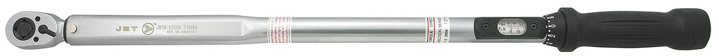 Ajuste micrométrico fácil de usar con tuerca o botón de bloqueo Trinquete reversible Sacudida perceptible y clic audible para indicar que se ha alcanzado el ajuste deseado Escala analógica claramente visible con lupa de burbuja exclusiva Botón de bloqueo patentado en el mango Puede usarse en roscas de mano izquierda y derecha simplemente presionando el conector de accionamiento a través de la llave Construido resistente para profesionales exigentes Calibrado en fábrica a Plus/-4-Percent Cumple con la especificación federal del gobierno de EE. UU. GGG-W-00686C JET ofrece servicio de recalibración certificado en llaves dinamométricas
