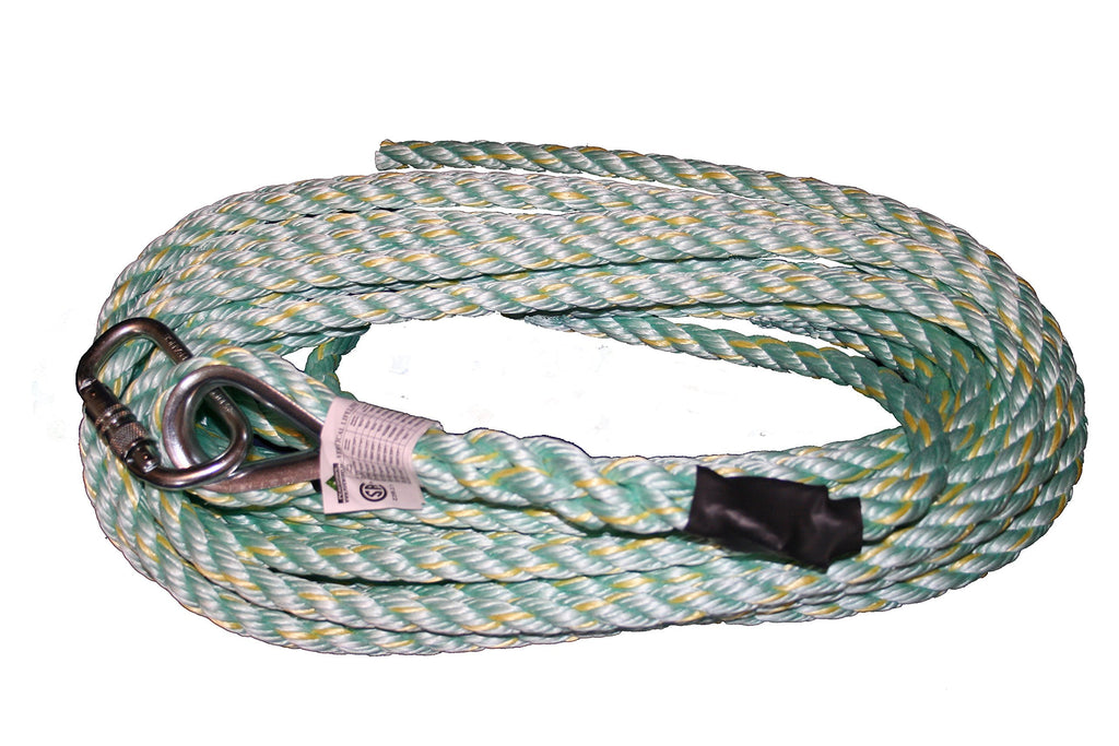 Todas las líneas de vida PeakWorks están certificadas según CSA Z259.2.5-2012 y cumplen con los estándares ANSI Z359. Las líneas de vida están especialmente diseñadas con cuerdas fabricadas con poliacero de alta resistencia. Polysteel es una fibra de copolímero extruido que produce una cuerda liviana de extremadamente alta resistencia con Excelente resistencia a ácidos y álcalis. Las líneas de vida verticales PeakWorks tienen un diámetro de 5/8 de pulgada (16 mm). Resistencia mínima a la rotura de 6.000 libras (27 kN).