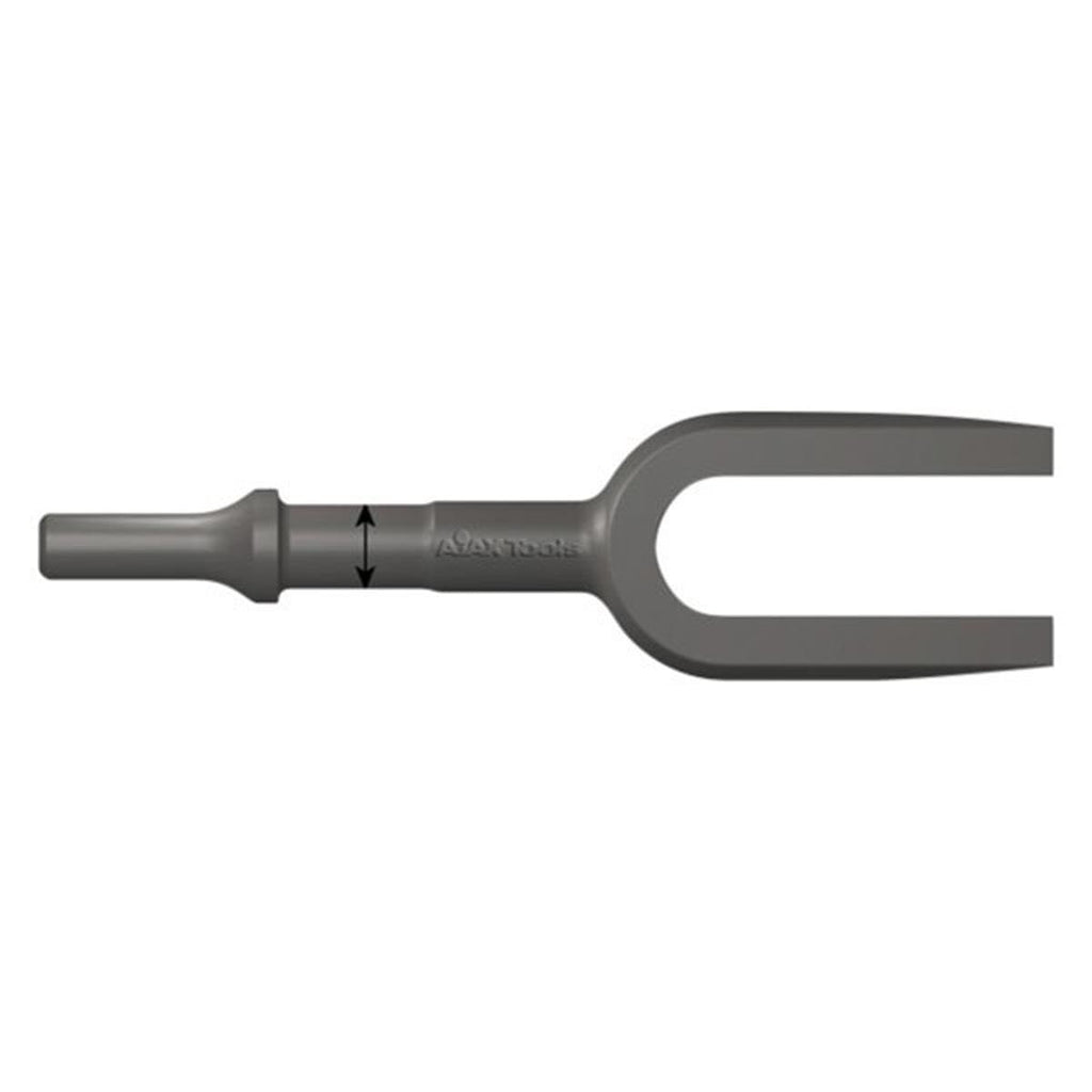 Excellent Quality. Made in the USA. | Ball Joint & Tie Rod Separator Chisel | Shank Size: .0498AJAX CHISELS AND PUNCHES SHOULD NEVER BE STRUCK AGAINST SURFACES THAT ARE HARDER THAN THE TOOLS THEMSELVES; I.E., BEARINGS AND BEARING RACES HAVE A MUCH HIGHER HARDNESS THAN THE OPTIMUM HARDNESS OF THE WORKING END OF ALL CHISELS AND PUNCHES. THERE ARE SPECIFIC AND SAFER PROCEDURES FOR THE REMOVAL OF THESE TYPES OF ITEMS. FOLLOW CERTIFIED MECHANICS RESOURCES FOR CORRECT APPLICATION OF TOOLS OR CALL AJAX TOOLS FOR ASSISTANCE.