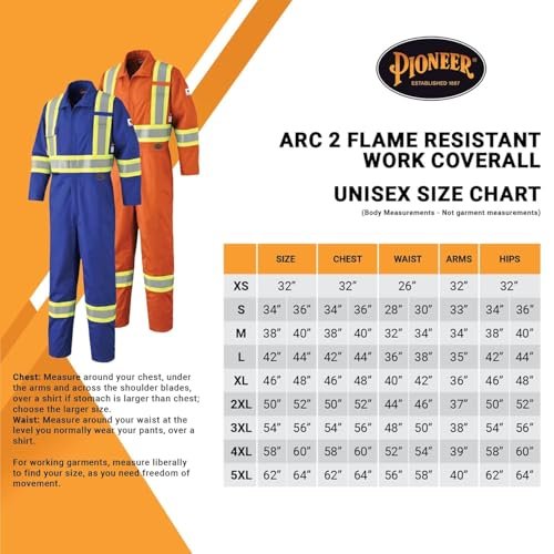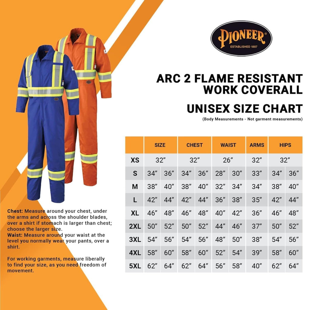 Pioneer Easy Boot Access UL ARC 2 Flame Resistant Work Coverall, Lightweight High Visibility Premium Cotton Nylon, Royal, 46, V2540510-46
